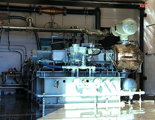 We built an industrial scale machine by modifying a commercial natural gas compressor. We changed the cylinder head, added nozzles, replaced valves to allow reversibility, coated the surfaces to prevent corrosion, and threw our minds and hearts at the problem of showing that our approach could dramatically increase the efficiency of compressed air energy storage. Without water spray, and without burning natural gas, previous attempts at storing energy in compressed air topped out at less than 50% thermal efficiency — ok for a backup system, but not enough to change the world. This year, we aimed at greater than 80% thermal efficiency, at a high RPM (and therefore power), to show that unlike what people had assumed, high efficiency does not mean sacrificing performance.