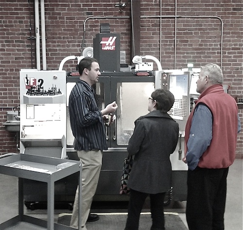 Machinemaster Todd Bowers breaking it down for Professor Robert Dibble and wife Helen