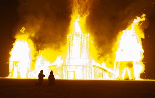 As the temple’s towers, lean and graceful, slowly surrendered to the flames, glowing sparks rose deep from the inferno, and like wisps were carried up towards the heavens. The temple of transition, once a place of cool respite, now glowed brighter than the noonday sun. The crowd gasped as a shower of blue leapt out from the flames. Someone, days before, hid fireworks that launched streams of blue from the middle of the swirling firestorm, but in that splendid moment, it was impossible not to see those glowing blue apparitions, lifted high into the glowing sky, as souls, let finally free.